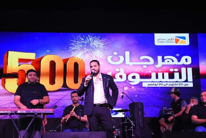 الجمهور يتفاعل مع مصطفي حجاج في مول تاون سنتر السلام بمهرجان التسوق