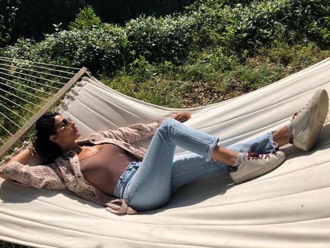 الفنانه نادين تظهر في حالة استرخاء وهي تاخد حمام شمس