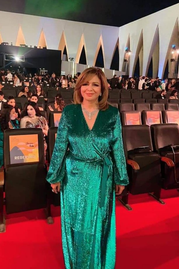 بفستان تركواز لامع ٠٠ إلهام شاهين تظهر بإطلالة محتشمه بحفل ختام مهرجان الجونة السينمائي