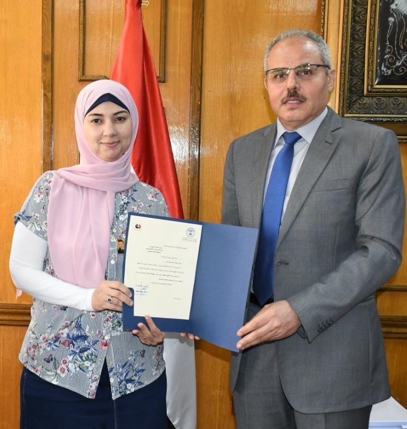 وقد تم تسليم القرار بحضور الدكتوره غاده حداد مدير مركز الاختيارات الالكترونيه