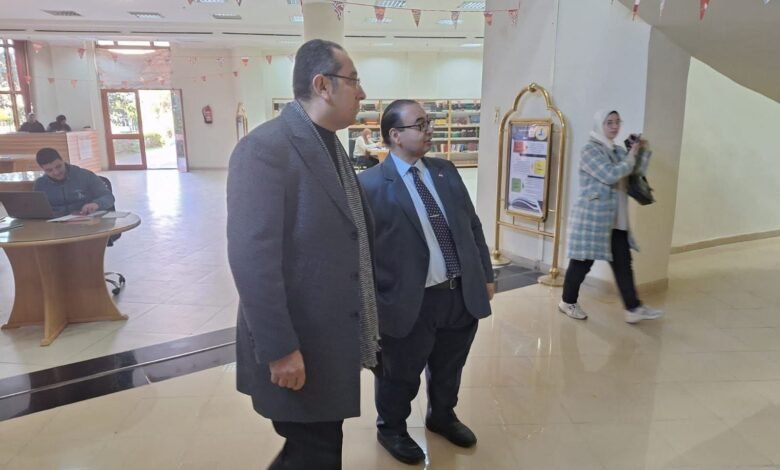 رئيس جامعة كفر الشيخ يتفقد مكتبة الجامعة المركزية