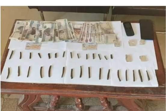 كما تم ضبط عدد 13 قطعة لمادة الحشيش المخ