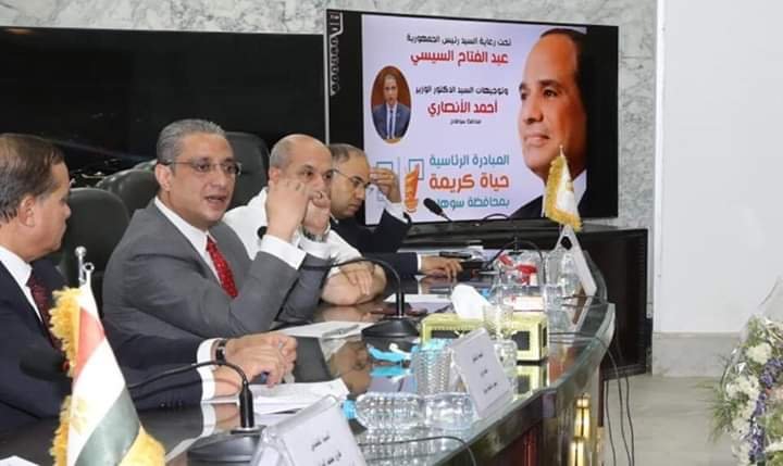 عقد الدكتور أحمد الأنصاري محافظ سوهاج، إجتماعاً لمتابعة خطة تنفيذ مبادرة "حياة كريمة" بالمحافظة، بحضور الدكتور أحمد عزيز رئيس جامعة سوهاج، والسيد عصام الدين الليثي سكرتير عام المحافظة، والمهندس طارق الوراقي السكرتير العام المساعد، والسيد رأفت السمان وكيل مديرية التضامن الإجتماعي، وعدد من وكلاء الوزارات، ورؤساء الوحدات المحلية، وممثلي 70 جمعية من المجتمع المدني، وذلك بديوان عام المحافظة.