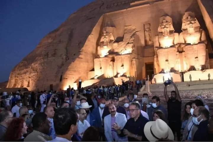 احتفلت مصر، اليوم الجمعة، بتعامد الشمس على وجه رمسيس الثانى بمعبدى أبو سمبل بمحافظة أسوان جنوب البلاد وذلك بحضور 3 آلاف سائح وزائر ووزير السياحة والأثار ومحافظ أسوان وسفراء 56 دولة.