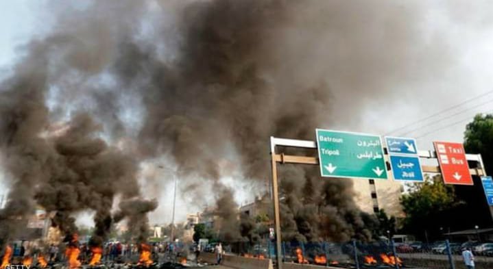 ولاتزال اغلب الطرق اللبنانية مغلقة ، بالأضافة لإحراق الأطارات احتجاجا على الاوضاع الأقتصادية والضرائب الجديدة ، كم تم قطع الطريق السريع الساحلى فى بترون شمالا