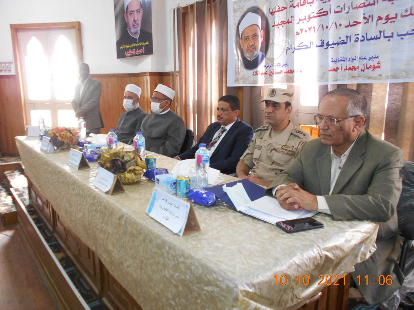 وأبدى فضيلة الشيخ طيفور وكيل وزارة الأوقاف بسوهاج سعادته بحضور هذه الاحتفالية وشدد على أن الأزهر والأوقاف جناحان لدعوة إسلامية وسطية وأشار طيفور لدور الجيش المصرى في الحفاظ على العروبة والتصدى لإية أخطار تواجهها وبيَن وكيل وزارة الأوقاف عظيم أجر من يرابط ويجهاد في سبيل حماية وطنه