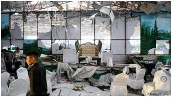 “داعش” يعلن مسئوليته عن هجوم حفل الزفاف بكابول، أعلنت السلطات الأفغانية مقتل 63 شخصا قتلوا وجرح 182 آخرين فى هجوم إنتحارى مفترض إستهدف حفل زفاف فى كابول، تنظيم “داعش” أعلن مسئوليته عن التفجير، بعد ساعات من وقوعه، قال مسئول بوزارة الداخلية الأفغانية إن 63 شخصاً قتلوا جراء تفجير إنتحارى فى حفل زفاف بالعاصمة الأفغانية كابول، وأضاف نصرت رحيمى، المتحدث بإسم وزارة الداخلية، إن 182 شخصاً آخرين أصيبوا جراء التفجير الذى وقع فى قاعة أفراح بغربى كابول فى وقت متأخر، وأوضح رحيمى أن الضحايا بينهم نساء وأطفال.