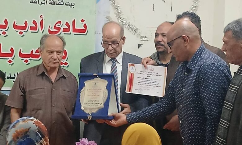 واختُتمت الأمسية بتكريم الشاعر عبد الحافظ بخيت، تقديرًا لإسهاماته الأدبية ودوره البارز في إثراء الحركة الثقافية.