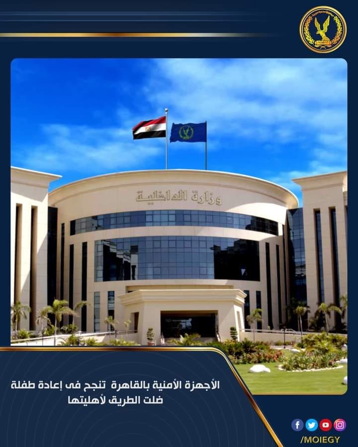فى إطار سياسة وزارة الداخلية الهادفة فى أحد محاورها إلى تفعيل الدور المجتمعى من خلال التعامل الإيجابى مع كافة الحالات ذات الطابع الإنسانى..فقد حضرت الى قسم شرطة عين شمس بمديرية أمن القاهرة (إحدى المواطنات) وبصحبتها (طفلة ، سن 12) ، وأفادت بعثورها على الطفلة بدائرة القسم، وبسؤال الطفلة عن أهليتها أفادت أنها تائهه ولا تعرف طريق العودة للمنزل.