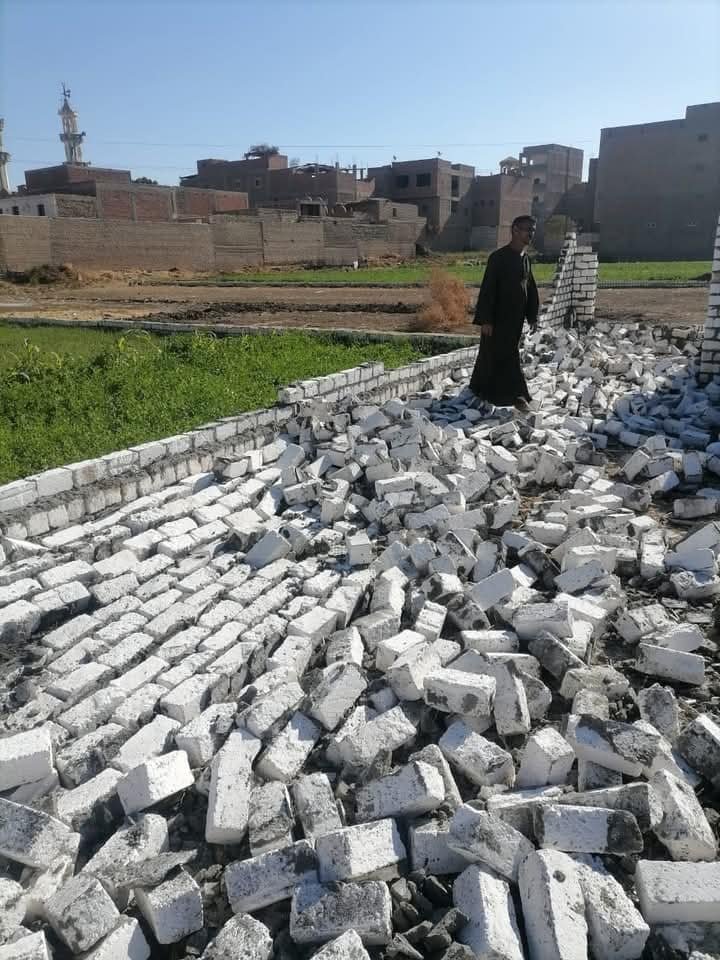 بتنفيذ إزالة لحالتين تعدى على الاراضي الزراعية خارج الحيز العمراني بناء بالطوب الابيض والاسمنت على مساحة 2 قيراط بناحية السمطا كما تم اتخاذ كافة الاجراءات القانونية