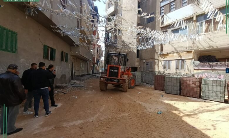 إستكمال أعمال التطوير ورفع كفاءة الشوارع الداخلية بتركيب بلاط الإنترلوك بمنيا القمح