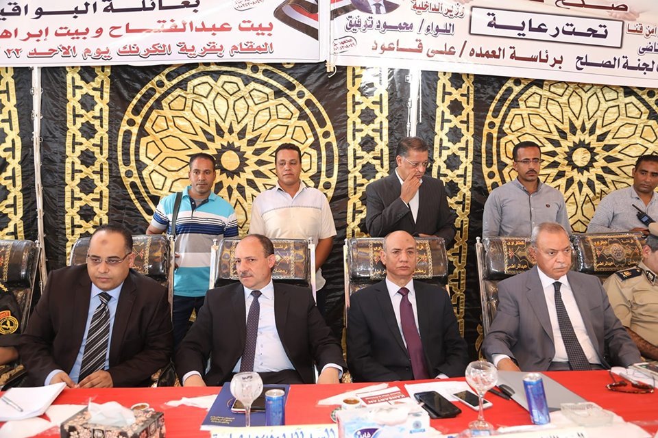 شهد السيد عبدالحميد الهجان محافظ قنا واللواء مجدى القاضى مساعد وزير الداخلية مدير امن قنا جلسة صلح القودة بين ابناء بيت عبد الفتاح و بيت فواز بقرية الكرنك بمركز ابو تشت وذلك بحضور اللواء محمد ضبش مدير ادارة البحث الجنائي بقنا واللواء ايهاب طه مساعد مدير الامن لقطاع الشمال والعميد عاطف ابو الوفا رئيس فرع الامن العام والنائب فتحى قنديل والنائبة سحر صدقي عضوي مجلس النواب وعدد من رجال الدين الإسلامى والمسيحى والقيادات الأمنية والتنفيذية والعمد والمشايخ وأهالى العائلتين والقرى المجاورة .