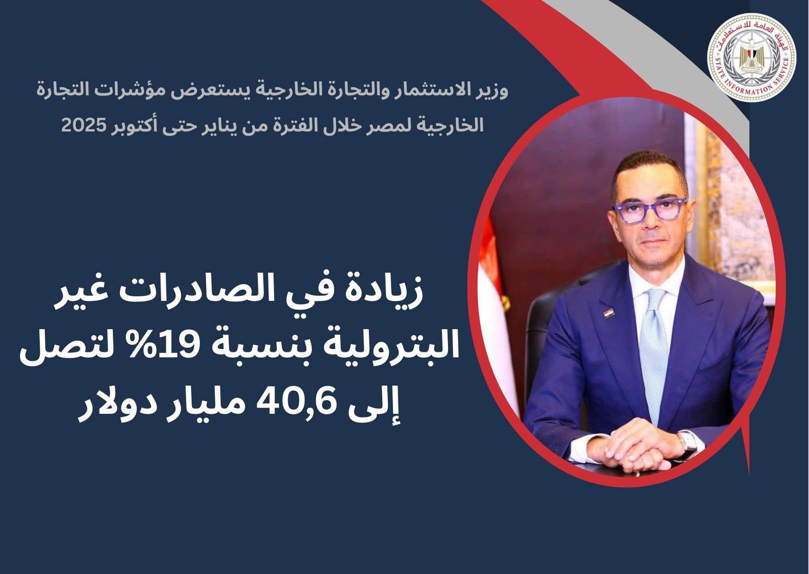 استعرض المهندس حسن الخطيب وزير الاستثمار والتجارة الخارجية أحدث تقرير صادر عن الهيئة العامة للرقابة على الصادرات والواردات حول مؤشرات التجارة الخارجية لمصر خلال شهر أكتوبر 2025 حيث استمر ارتفاع الصادرات المصرية مقارنة بنفس الفترة من العام السابق