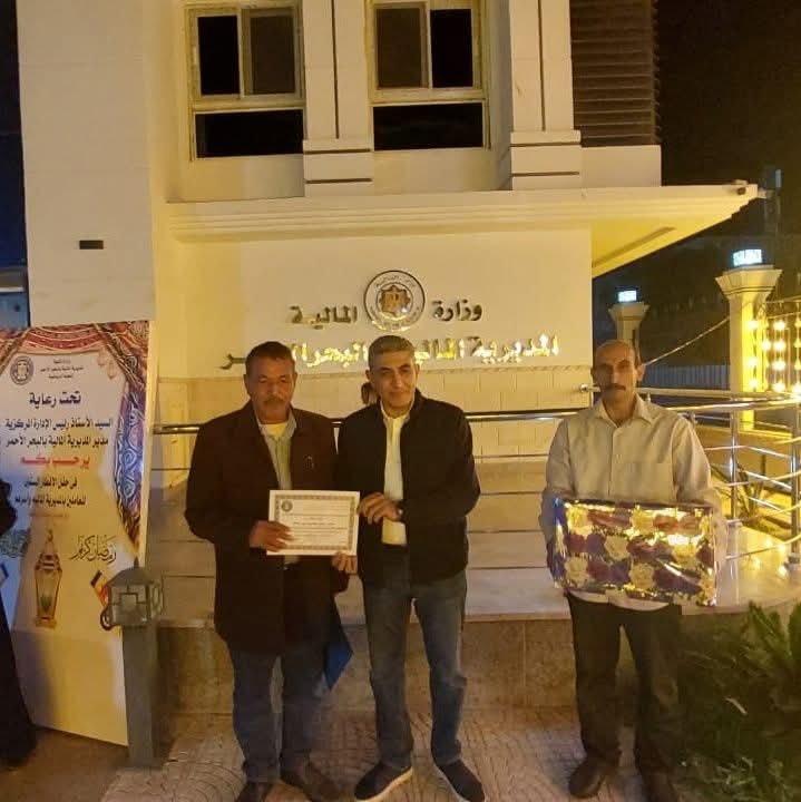بالمديرية الماليه بالبحر الأحمر وحضر الإفطار. العاملين الحاليين والسابقين وأسرهم وذلك تأكيد على الروح الواحدة السائدة بين أبنائهم وتم خلال الإحتفال تكريم إثنين من اللذين بلغوا سن التعاقد وهم (١) الأستاذ. جمال عبد العزيز مزارع