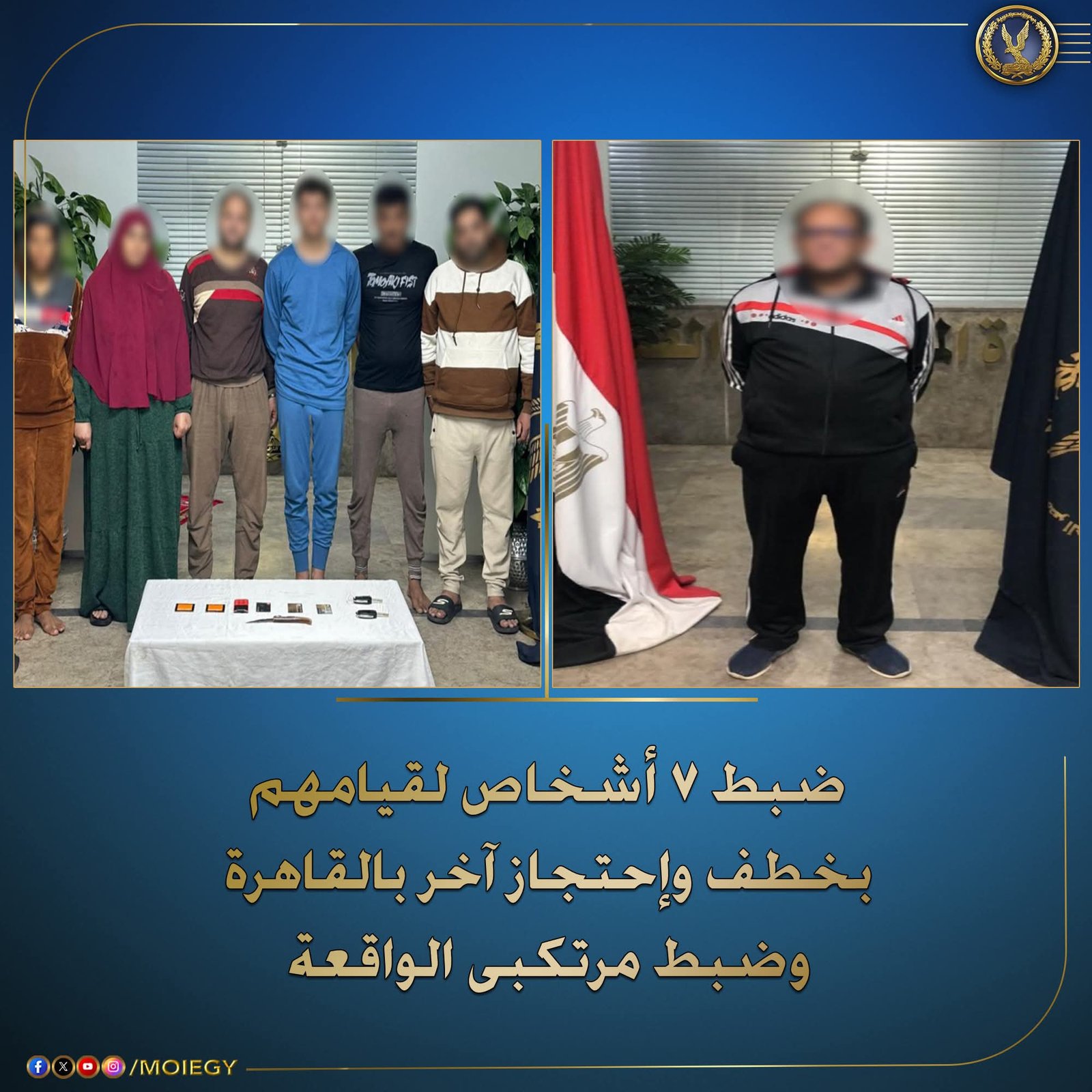 على الفور، أصدر مدير أمن القاهرة ومدير المباحث ورئيس القطاع توجيهات بضرورة السرعة في الفحص والمتابعة. من خلال التحريات، تم تحديد وضبط مرتكبي الواقعة وعددهم سبعة أشخاص. كما تم تحرير المختطف الذي عُثر عليه مصابًا بكدمة في الوجه. وبالتحقيق مع المتهمين، أقروا بارتكابهم الجريمة على النحو المذكور، مبررين ذلك بوجود خلافات مالية بين أحدهم والمجني عليه.