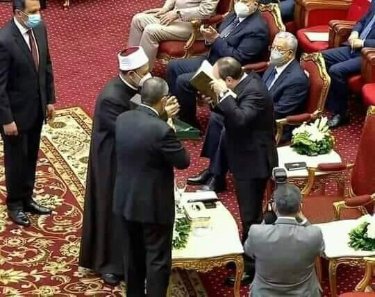 الامام الاكبر يهدي الرئيس السيسي نسخة فريدة من مصحف الأزهر الشريف