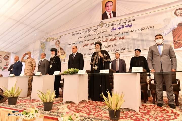 وألقيت كلمات من محافظ الشرقية ورئيس جهاز مدينة العاشر وصاحبي النيافة الأنبا تيموثاوس والأنبا مقار، واختتمت الكلمات بكلمة قداسة البابا.