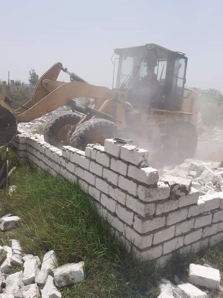 إزالة ٢ حالة تعدى على الأراضي الزراعية على مساحة ١٣٢٠ عبارة عن مباني بالطوب الأبيض وذلك بنطاق قرية أبو الشقاف .