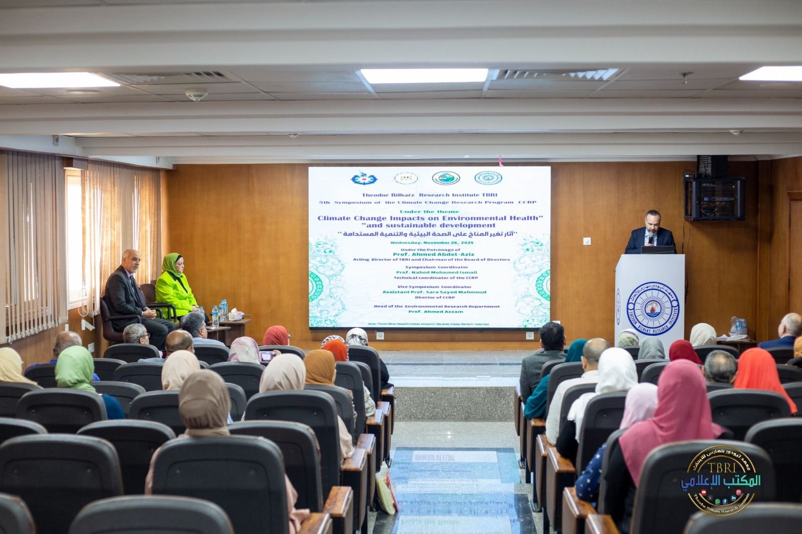 وفي هذا الإطار، نظم البرنامج البحثي للتغيرات المناخية بمعهد تيودور بلهارس للأبحاث فعاليات الندوة السنوية الخامسة تحت عنوان: “آثار تغير المناخ على الصحة البيئية والتنمية المستدامة”، وذلك تحت رعاية الدكتور أحمد عبد العزيز، القائم بأعمال مدير المعهد ورئيس مجلس الإدارة .