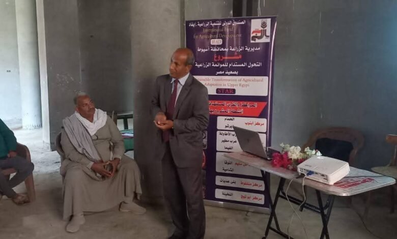 وفي هذا الإطار تم تنظيم ندوة إرشادية بقرية الحمام بمركز أبنوب تحت عنوان “تأثير التغيرات المناخية على المحاصيل المختلفة”، بحضور الدكتور سيد شحاتة أستاذ نبات الزينة بجامعة أسيوط، والمهندس محمد علي محمد بإدارة الإرشاد الزراعي، وبمشاركة عدد من المزارعين والمهتمين بالقطاع الزراعي بالقرية والقرى المجاورة.