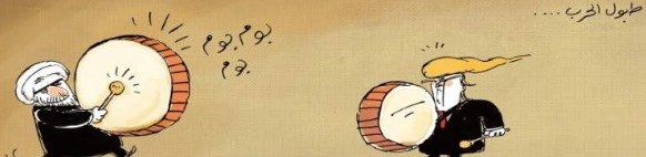 موقع جريدة امارتي نشر كاريكاتير يعبر قيام ايران بدق طبول الحرب فى المنقطة