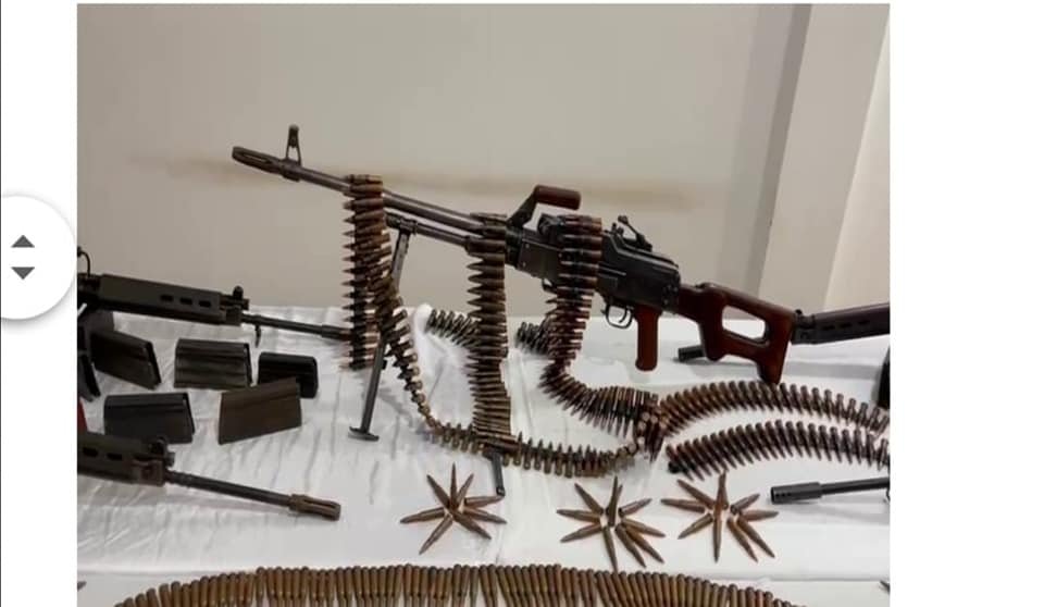 (عنصر إجرامى "له معلومات جنائية" – مقيم بدائرة القسم) وعُثر بداخل الشقة سكنه على (رشاش جرينوف – 6 بنادق آلية – كمية من الطلقات النارية مختلفة الأعيرة – دبشك خشبى خاص ببندقية – 24 خزينة – سلاح أبيض).