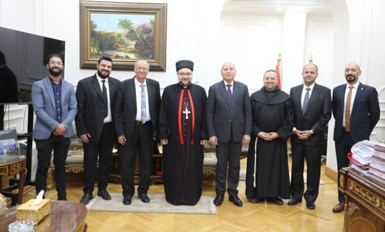الدكتور إبراهيم صابر محافظ القاهرة يستقبل الأسقف بولس ساتى رئيس الكنيسة والطائفة الكلدانية فى مصر