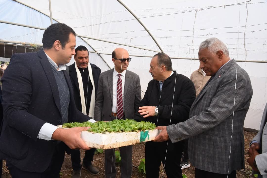 وشملت الجولة؛ تفقد مجمع الصوب الزراعية؛ وقدم الدكتور أشرف جلال المشرف العلمى على المجمع؛ شرحاً مفصلاً؛ حيث تبلغ مساحتها أكثر من فدان، وتحتوى على (12) صوبة زراعية بمقاسات مختلفة؛ لزراعة المحاصيل الاقتصادية، وأهمها: الخيار، الطماطم السلكية، فلفل الألوان، وتنتج سنوياَ نحو (40) طن.