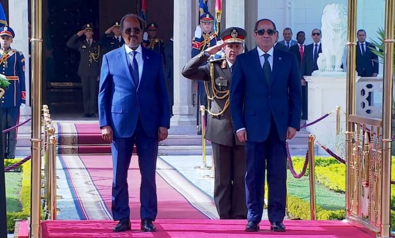 وصرح المتحدث الرسمي باسم رئاسة الجمهورية بأن مراسم الاستقبال شملت أداء حرس الشرف للتحية الرسمية، وعزف السلام الوطني لكل من جمهورية الصومال الفيدرالية وجمهورية مصر العربية، أعقبها التقاط صورة تذكارية للرئيسين، ثم عقد لقاء ثنائي، تلاه جلسة مباحثات موسعة بمشاركة وفدي البلدين، قبل أن يقيم السيد الرئيس مأدبة غداء تكريماً للرئيس الصومالي والوفد المرافق.