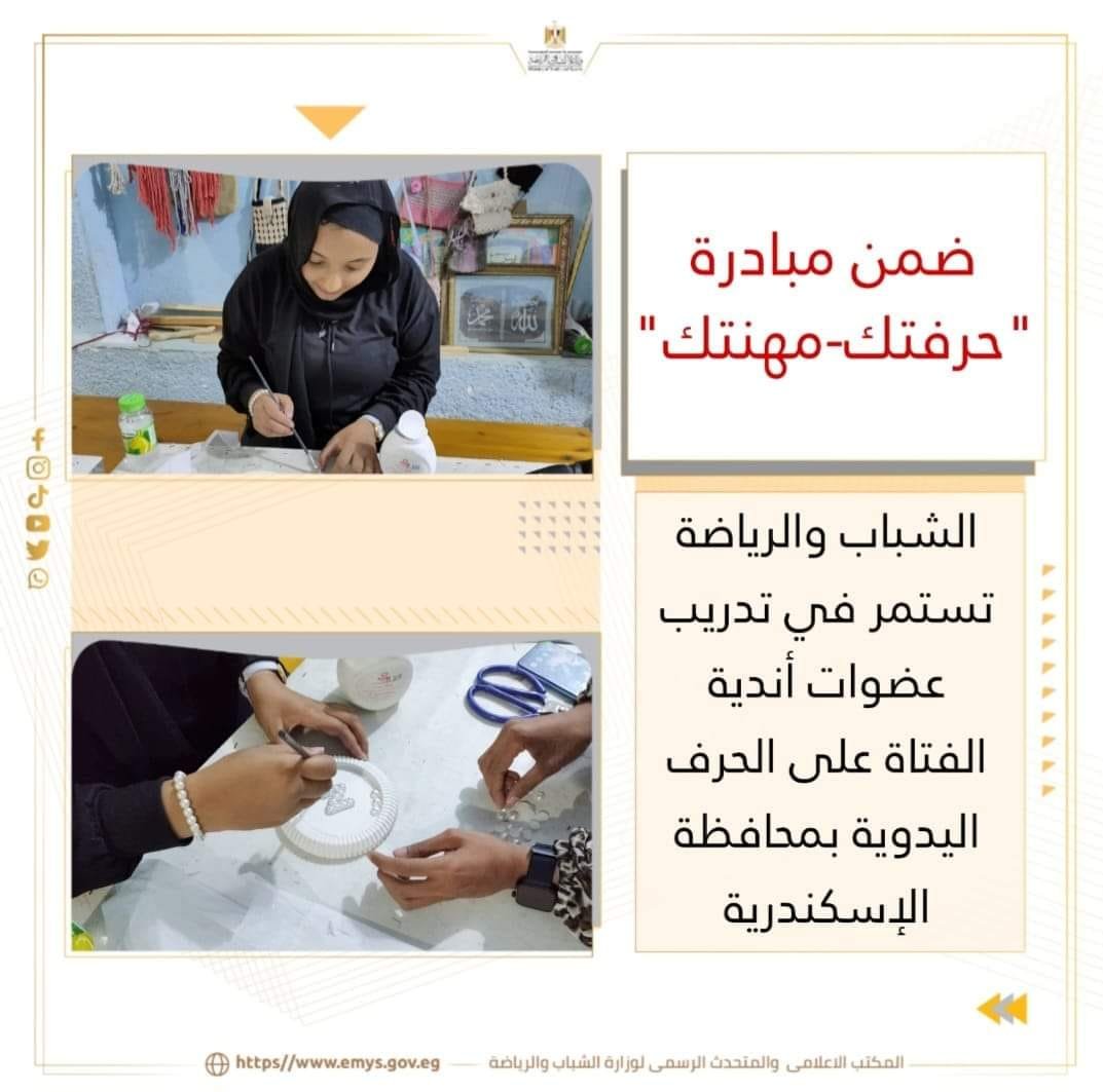 الشباب والرياضة تستأنف تدريب عضوات أندية الفتاة على الحرف اليدوية بمحافظة الإسكندرية