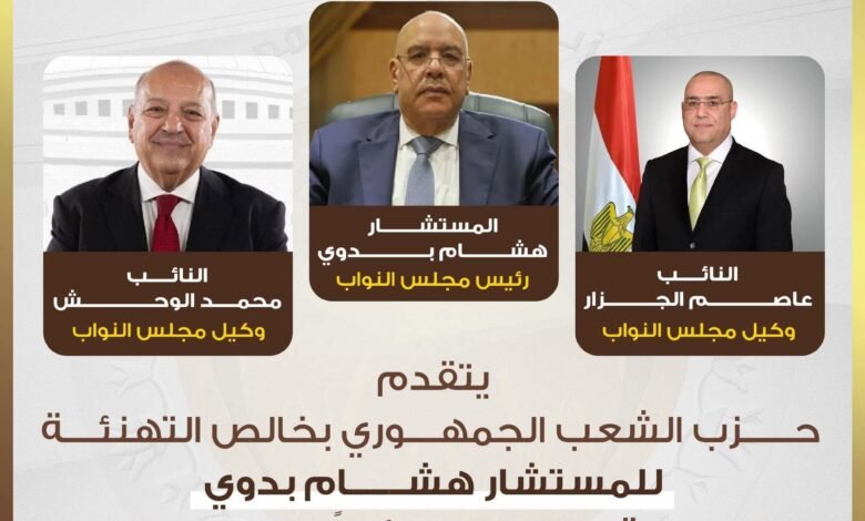 كما يهنئ الحزب النائب عاصم الجزار والنائب محمد الوحش، بمناسبة فوزهما بمنصب وكيلي مجلس النواب، في ثقة تعكس تقدير المجلس لكفاءتهما وخبرتهما.