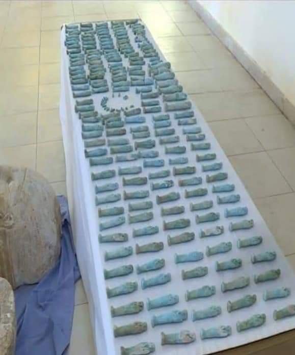 وبعد الفحص تبين أنها عبارة عن 193تمثالا وعدد 1 تابوت حجرى كبير الحجم تم التحفظ على المضبوطات.