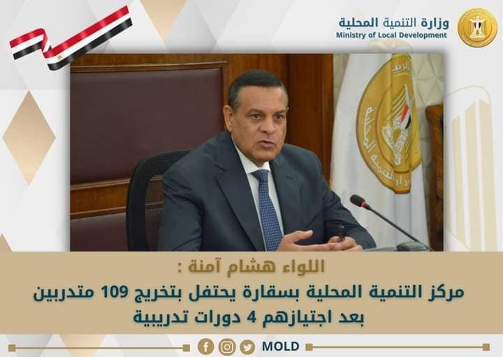 اللواء هشام آمنة: مركز التنمية المحلية بسقارة يحتفل بتخريج 109 متدربين بعد اجتيازهم 4 دورات تدريبية