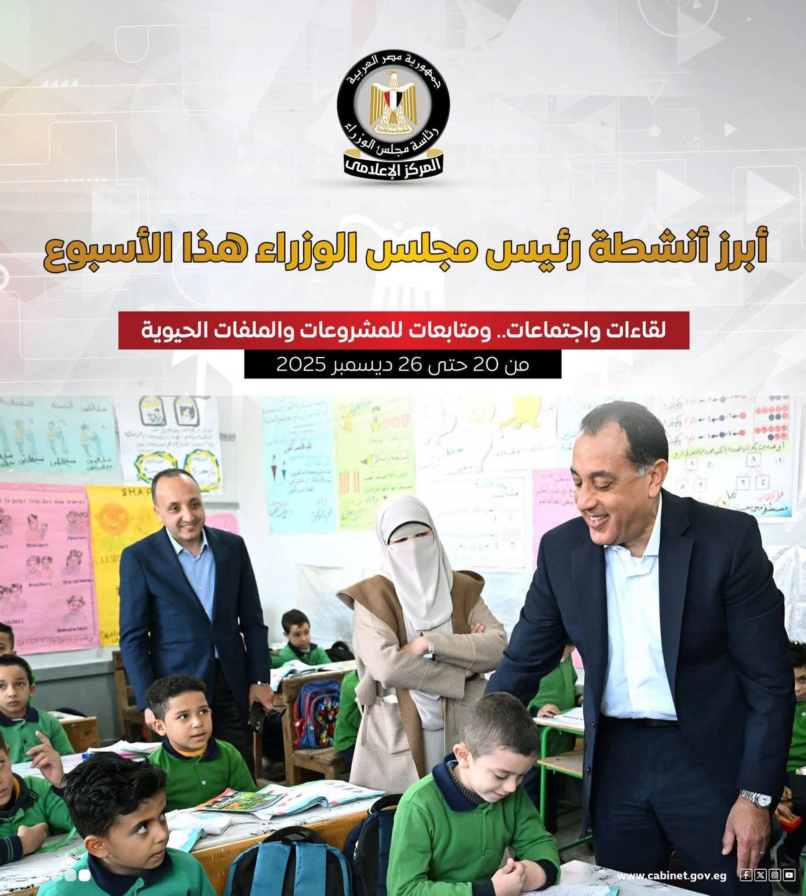 استعرض المركز الإعلامي لمجلس الوزراء بالإنفوجراف أهم أنشطة رئيس مجلس الوزراء خلال الأسبوع الجاري حيث شملت جولاته التفقدية ومتابعاته لمشروعات ومبادرات مهمة على مستوى الدولة