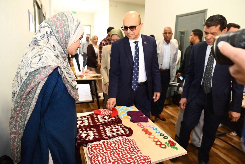 كما تفقد الدكتور المنشاوي معرض المشغولات اليدوية لطلاب الجامعة، والذي ضم مجموعة متنوعة من أعمال الطلاب، مشيدًا بما تميزت به من مستوى فني راقٍ يعكس مواهبهم وإبداعهم وقدرتهم على الابتكار والتعبير الفني.