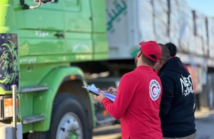 الهلال الأحمر المصري يدفع بأكثر من 168 ألف سلة غذائية ومستلزمات إغاثية وشتوية عبر قافلة «زاد العزة» الـ 174