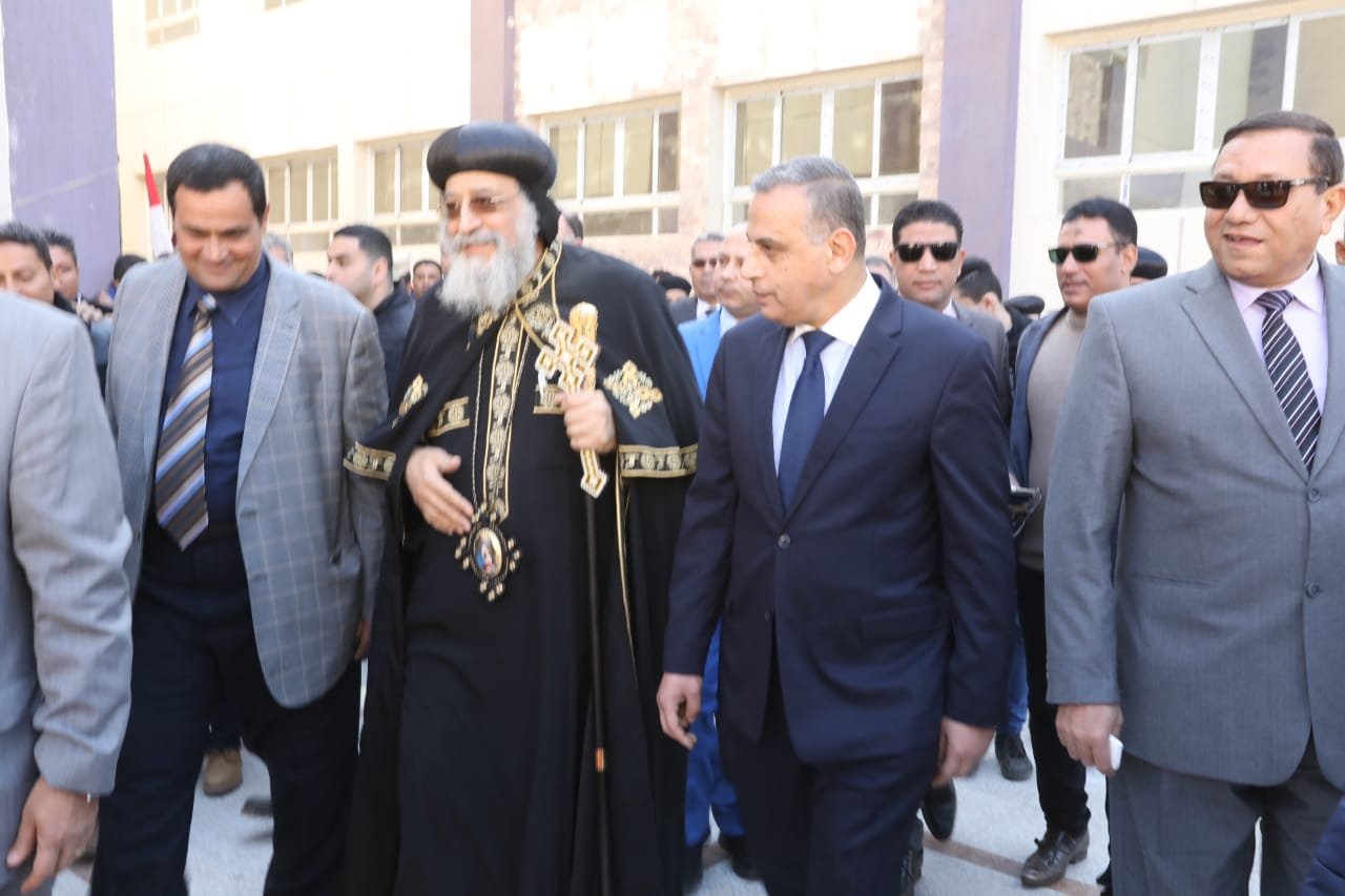 ومن جانبه رحب اللواء طارق الفقى محافظ سوهاج بقداسة البابا تواضروس الثانى على ارض سوهاج، مشيرا الى أنها زيارة تاريخية، متمنيا لقداسته إقامة سعيدة بسوهاج.