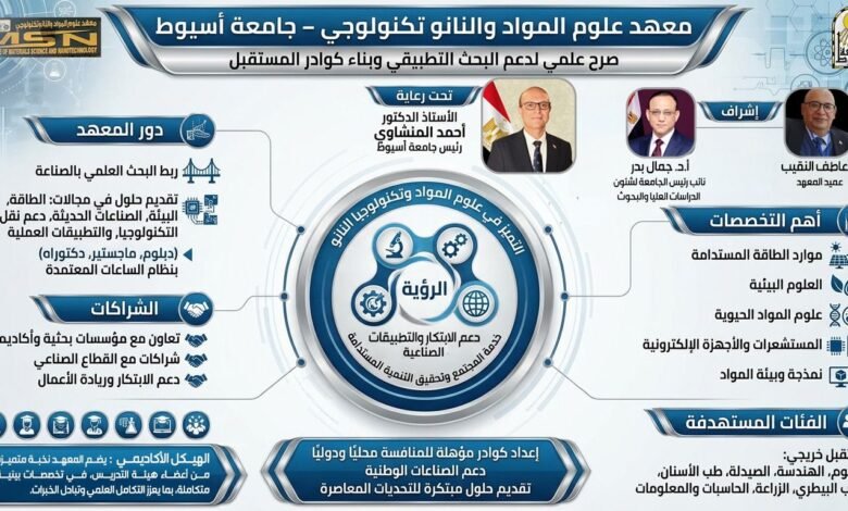 بالإنفوجراف .. تعرّف على معهد علوم المواد والنانو تكنولوجي بجامعة أسيوط