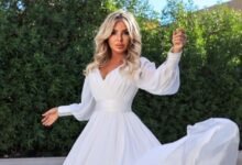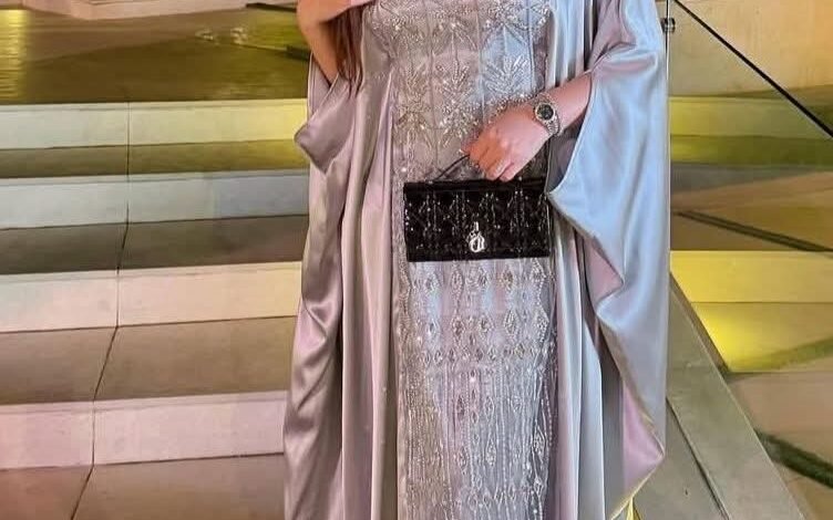 تألقت نسرين طافش في الصور بإطلالة رمضانية، حيث ظهرت مرتدية قفطانا طويلا باللون الرمادي اللامع بتطريزات بسيطة تبرز أناقتها.