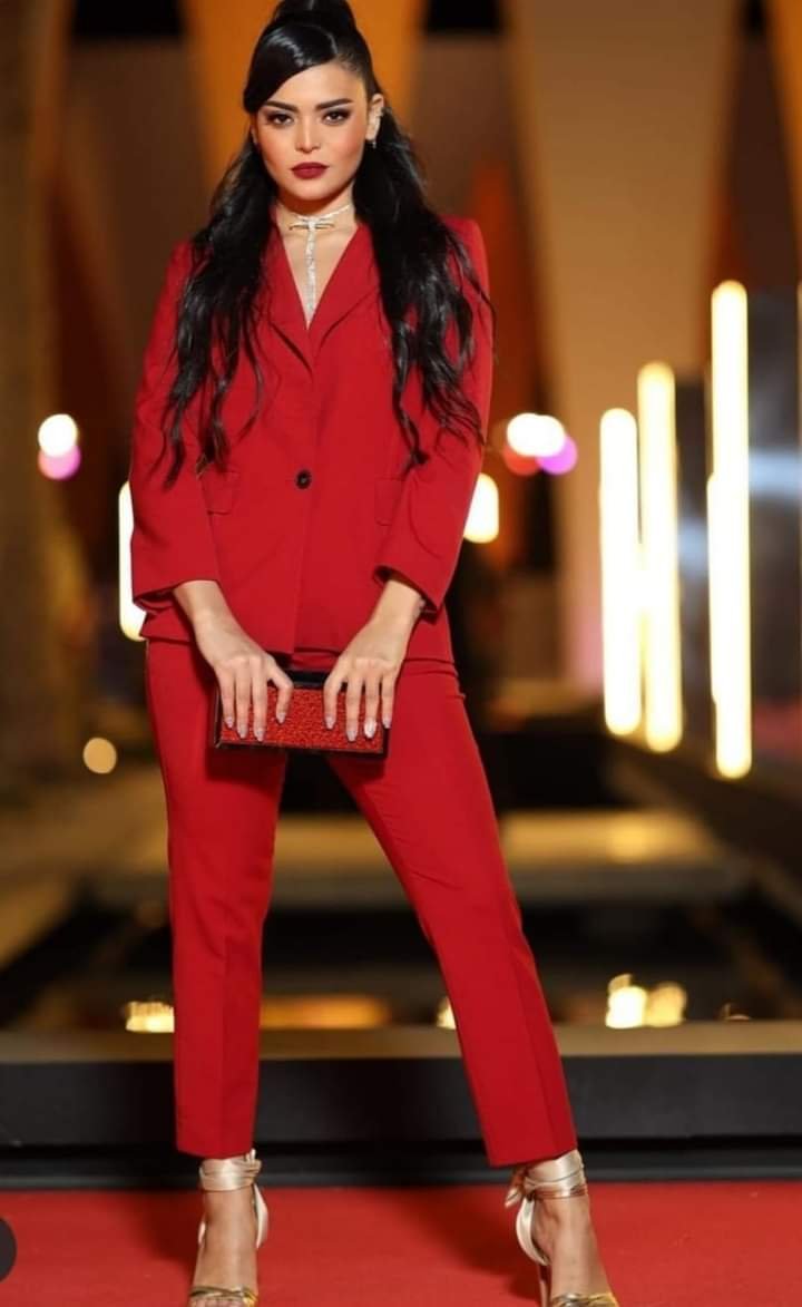 باللون الأحمر اسماء جلال تتألق على السجاده الحمراء بالجونه