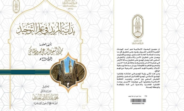 يقدِّم جناح الأزهر الشريف بمعرض القاهرة الدولي للكتاب، في دورته الـ 57، لزوَّاره كتاب “بداية المُرِيد في علم التوحيد”، للعلامة محمد أبي السُّعُود السِّبَاعِيِّ المالكِيِّ الخَلْوَتِيِّ، المتوفى سنة (1268هـ)، صاحب الحاشية المشهورة على «شرح الخريدة البهية»، من إصدارات مجمع البحوث الإسلامية بالأزهر الشريف .