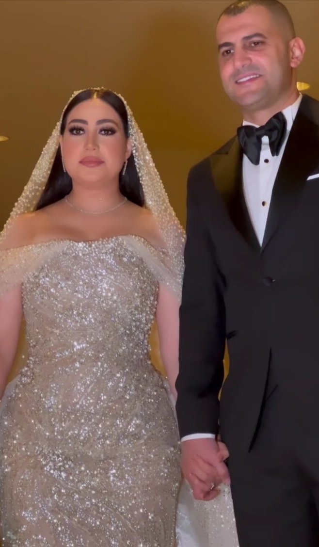 وارتدت بوسي فستان زفاف كالأميرات، من تصميم العالمي هاني البحيري، قبل أن ينضم لها العريس بعد قليل لبدء مراسم الزفاف.