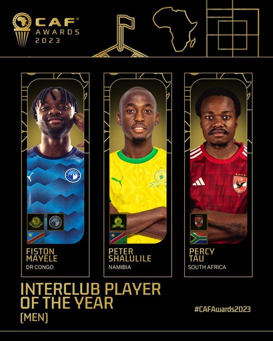 وقال كاف عبر صفحته الرسمية بموقع التواصل الاجتماعى "إكس" إن القائمة النهائية تضم كلا من الجنوب أفريقى بيرسى تاو جناح النادى الأهلى والناميبى بيتر شالوليلي مهاجم صن داونز والكونغولي فيستون مايلي مهاجم بيراميدز.