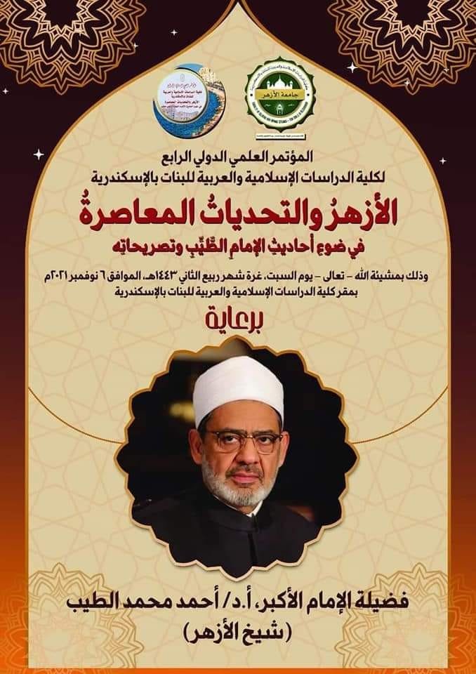 تنظم كلية الدراسات الإسلامية والعربية للبنات بمحافظة الإسكندرية مؤتمرها الدولي الرابع، في 6 نوفمبر المقبل 2021 م، تحت عنوان، الأزهر والتحديات المعاصرة في ضوء أحاديث الإمام الطيب وتصريحاته.