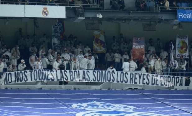 ولم يكن من الواضح لحظة طردهم من المدرجات ما إذا كان مغادرتهم الملعب لارتدائهم قميص الفريق المنافس لأتلتيكو مدريد، أم لسبب آخر.