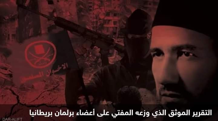 التقرير الموثَّق الذي وزعه المفتي على أعضاء البرلمان البريطاني يفضح جماعة الإخوان الإرهابية ويكشف منهجها المتطرف منذ نشأتها وارتباطها بالتنظيمات الإرهابية وعلى رأسها داعش وحسم وغيرهما وأهم الأفكار المتطرفة التي تتبناها الجماعة والشخصيات التي أسست ونظَّرت للعنف داخلها منذ إنشائها.