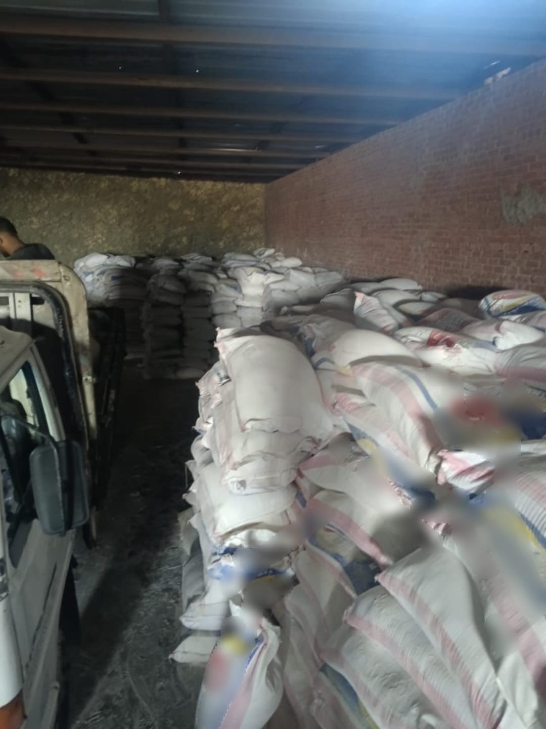 اسفؤت الحملات عن ضبط مخزن غير مرخص داخل مزرعة بمدينة العاشر من رمضان يحتوي على ( ١٤٢٠) شيكارة دقيق فاخر استخراج 72% بإجمالي (٧١ طن) مجهول المصدر بدون فواتير أو بيانات توضح مصدر الحيازة.