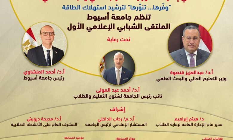 جامعة أسيوط تطلق مسابقة «أفضل تصميم غلاف كتاب» ضمن فعاليات الملتقى الشبابي الإعلامي الأول بجامعة أسيوط لتعزيز الوعي بترشيد استهلاك الطاقة