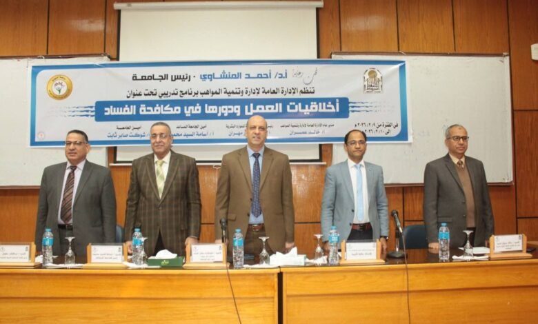 جامعة أسيوط تنظم برنامجًا تدريبيًا حول «أخلاقيات العمل ودورها في مكافحة الفساد الإداري»