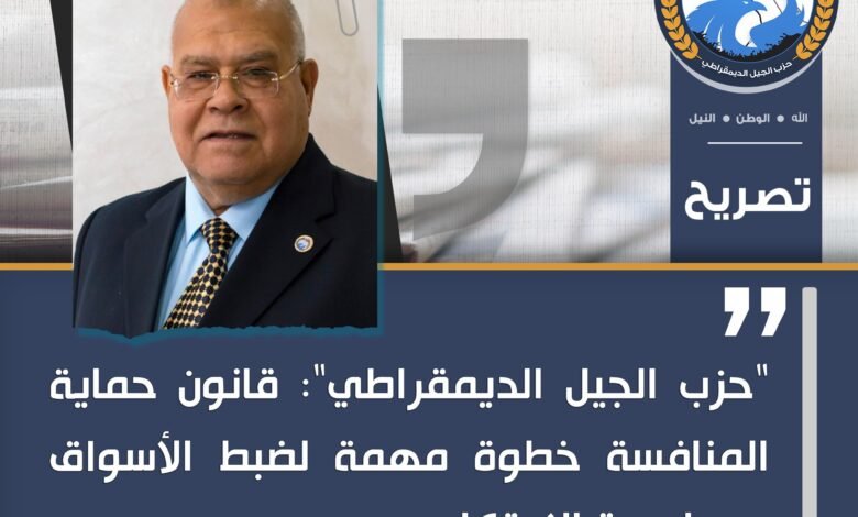 حزب الجيل الديمقراطي: قانون حماية المنافسة خطوة مهمة لضبط الأسواق ومواجهة الاحتكار